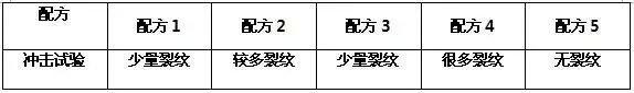 從表1中可看出:配方5做出的涂塑樣板沖擊后無(wú)裂紋,其它4個(gè)配方的涂塑樣板都有裂紋。